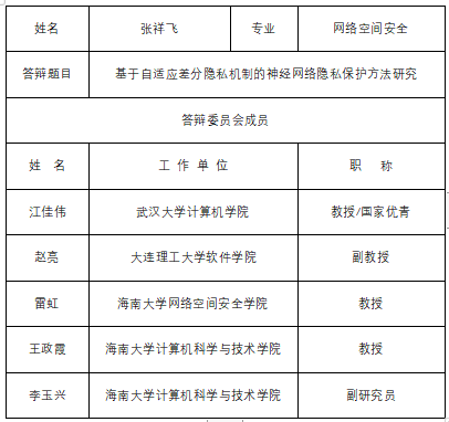 计算机科学与技术学院张清辰教授指导的2021级博士研究生张祥飞,定于2023年10月28日上午10:30在线(腾讯会议号:928-813-091)进行博士论文开题答辩,欢迎广大师生莅临指导。相关信息如下: