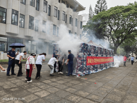 为深刻汲取江西新余市“1·24”特别重大火灾事故、河南南阳市“1·19”重大火灾事故教训,按照教育部和省委、校党委的工作部署和要求,2024年3月29日,为提升儋州校区师生消防安全意识以及在火灾突发情况下的应急疏散与逃生技能,儋州校区管委会精心组织,统筹安排,邀请儋州市消防救援支队举办了儋州校区火灾疏散逃生大演练活动。此次演练活动得到了广大师生的热烈响应和积极参与,活动共有203名师生参加,取得了良好的效果,有效提升了校区火灾安全防范水平。演练共分三个部分: