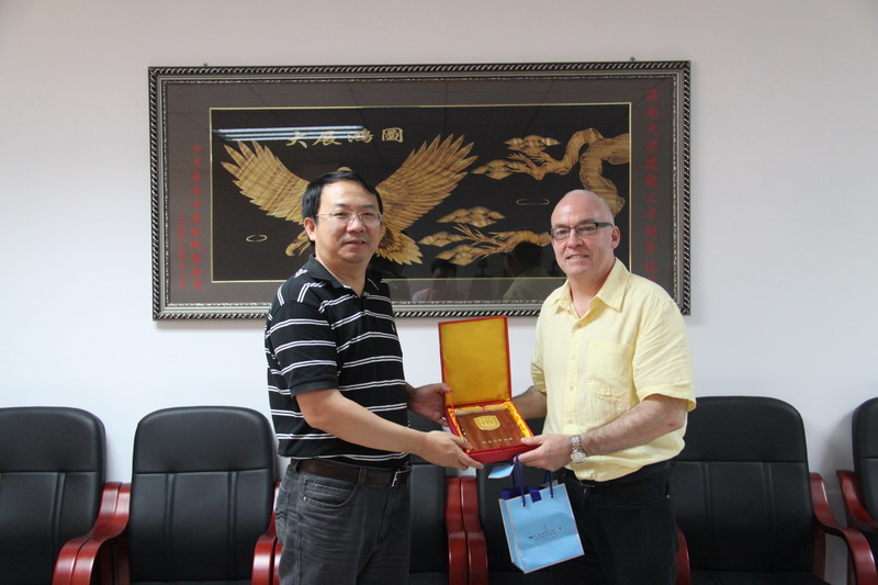 傅国华副校长向迈克尔副校长(右)赠送纪念品