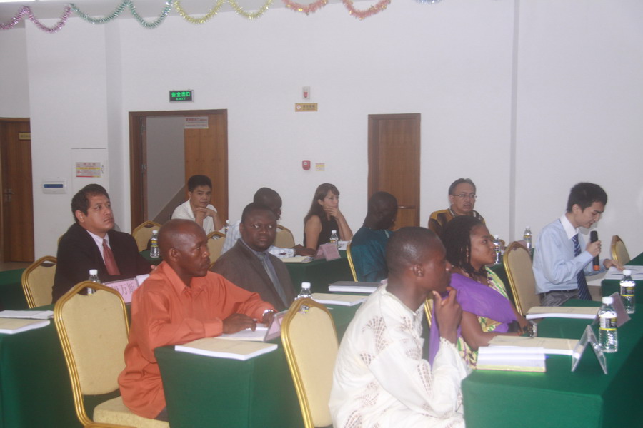 本期研修班学员代表、来自桑给巴尔畜牧和渔业部处长奥马尔•卡金•佛姆先生(Mr. Omar Kakim Foum)在开班仪式上发言,他首先对主办本次研修班的中国商务部和承办此次研修班的海南大学表示衷心的感谢,特别是海南大学热情周到的安排使他们心中倍感温暖。他相信通过参加本次研修班,一定能够使他们学到热带海洋产业开发的相关资讯以及各类海产品开发和利用的先进技术,对他们国家海洋产业发展将有很大的帮助,同时还可以学习到中国发展海洋产业的成功经验,也能从各方面了解中国和海南。