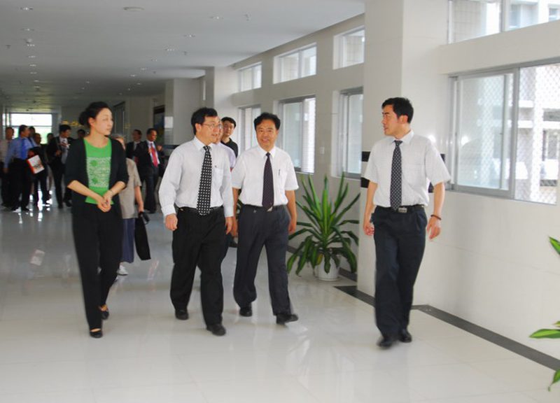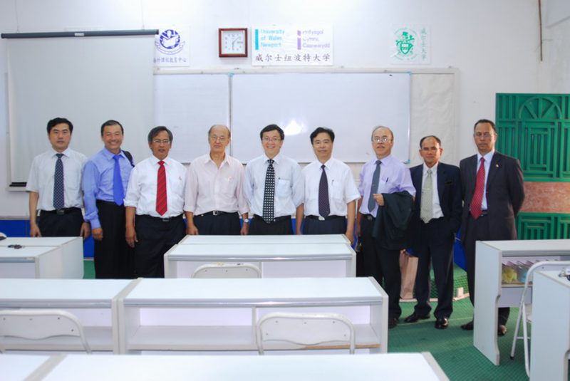 何国忠副部长(左五)在严庆副校长(左六)的陪同下参观我校海外课程教育中心