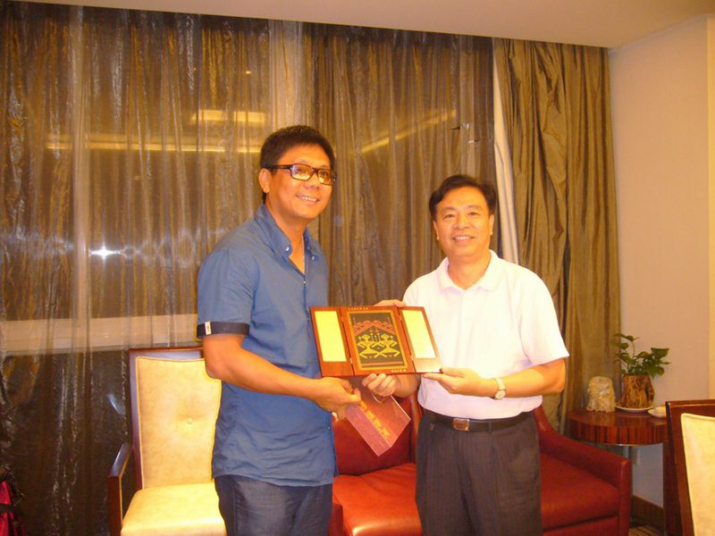 严庆副校长一行还拜会了鸿洲集团董事长王大富先生,双方就本年度由王大富先生资助的“时代海岸留学奖学金”颁发相关事宜和今后鸿洲集团继续支持海南大学办学项目进行了探讨并达成初步一致。