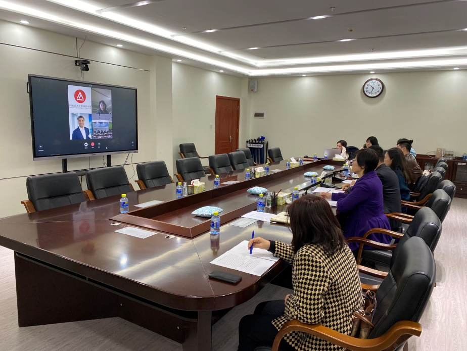 为加快推进“海南大学与旧金山艺术大学合作举办视觉传达设计专业本科教育项目”,2月22日上午,海南大学副校长叶光亮、国际合作交流处处长杨志昕、美术与设计学院院长唐丽春、副院长徐文廷、党委副书记徐望来,与旧金山艺术大学(AAU)国际事务副校长Diwarkar Gandhi、中国办公室总负责人李宇轩、上海办公室主任张黎娟等举行了两校校方线上协商会议,并就合作办学项目进行了充分讨论。海南大学外国语学院教授金莹担任翻译。