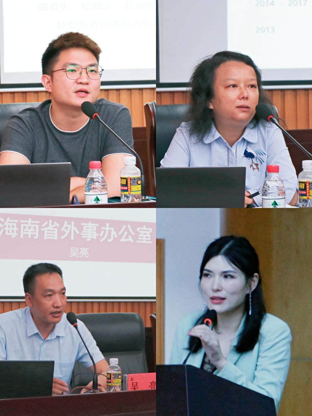 海南省外事办公室领事与涉外安全处吴亮以“领事保护”为主题,指导师生如何加强风险防范和如何寻求领事保护。省安全部门专家通过案例分析,给大家上了一堂生动的安全防护课。生态与环境学院马旖旎教授结合自身留学经历,寄语留学人员不忘留学初心、坚守报国使命,把个人的学习成长与祖国的繁荣进步结合起来。校医院医师樊墙指导师生如何做好行前健康准备工作、如何做好自我防护,防范新冠感染与流感。