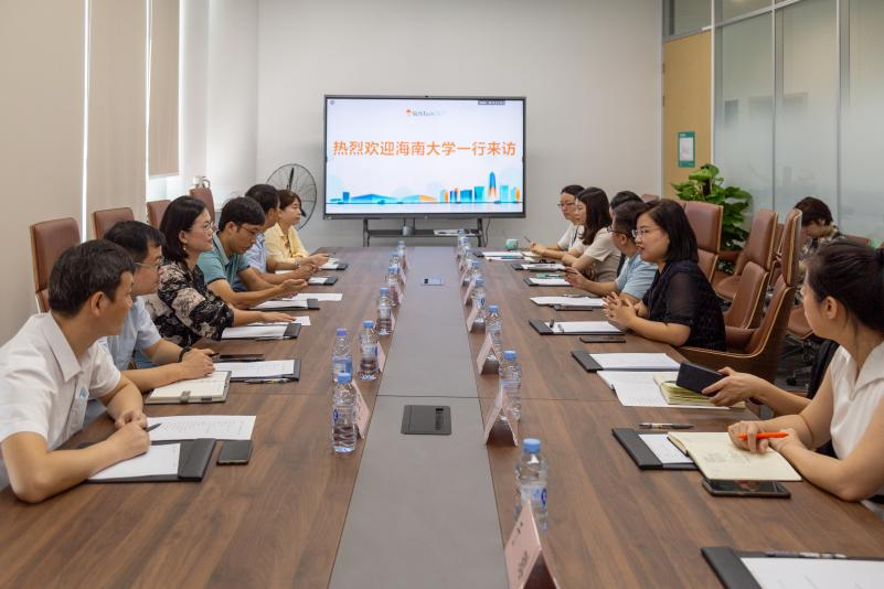 唐瑜对海南大学一行来访表示欢迎,并简要介绍了南方科技大学的历史沿革、发展概况、研究生教育的基本情况以及国际化办学概况。郑育声对南科大的热情接待表示衷心感谢,并简要介绍了海大校区、师资、生源、研究生管理等情况。随后,双方就境外联合培养博士项目的实施、管理及拓展,国际研究生管理,博士短期访学及境外博士访学项目的管理及实施情况,海上丝绸之路国际产学研用会议的推进情况等多项与研究生教育密切相关的工作分享经验、交流心得,同时表达了希望两校加强联系的美好期待。