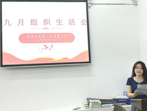 海德书院2023年9月15日于12栋1楼会议室召开了九月组织生活会,会议由党支部书记史雯婧主持,支部各委员、各党员以及积极分子参加。