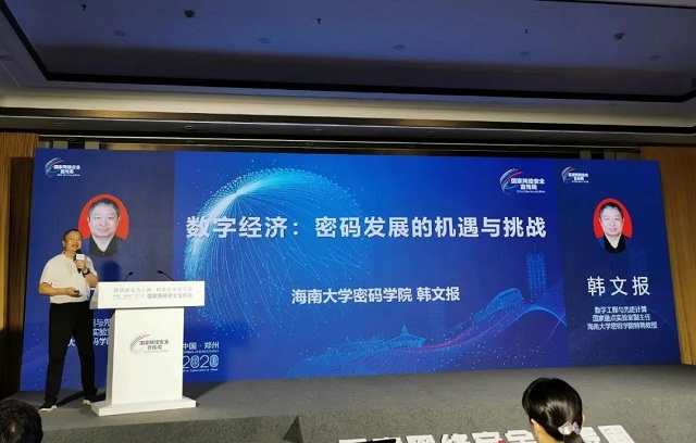 近日,由国家网信办主办的2020国家网络安全宣传周主会场在河南郑州隆重开幕。9月16日,“密码攻防与网络空间安全”主题论坛在郑州正式召开,论坛以“推进密码技术应用,构建网络空间新安全体制”为主题,国家和省市密码管理部门的负责人,密码和网络安全院士、专家,密码产业单位代表发表主题演讲。海南大学计算机与网络空间安全学院(密码学院)韩文报教授应邀做了题目为“数字经济:密码发展的机遇与挑战”主题报告,反响热烈...