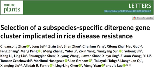 本站讯(记者 潘锭钰)12月29日,科学网发布2020中国农业科研亮点盘点,海南大学热带作物学院罗杰教授团队研究成果《揭示水稻中重要二萜的代谢机制》入选。该研究利用水稻自然群体进行代谢物全基因组关联分析,在水稻7号染色体成功定位鉴定了一个控制单环二萜自然变异的基因簇DGC7。该基因簇由1个萜烯合成酶及2个CYP450酶组成,在质体中催化形成5,10-二酮-蓖麻烯,一种具有潜在医用价值的重要二萜。DGC7受到茉莉酸甲酯介导的表...