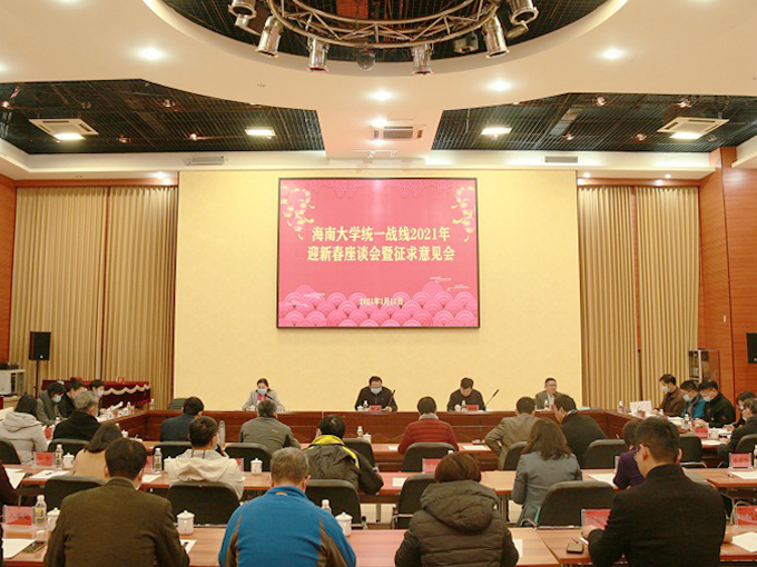 本报讯(记者/摄影 张赫)1月12日上午,海南大学统一战线2021年迎新春座谈会在思源学堂多功能厅召开。海南大学副校长、知联会会长傅国华,党委常委、副校长曹宪忠,党委常委、组织部部长韩淑梅,党委常委、统战部部长陈明宝出席会议。 傅国华向所有关心支持海南大学发展的统一战线广大成员表示感谢。他说,各位代表发言坦诚相见,有见地、有思想、有高度,体现出对学校各项事业发展的关心支持和高度负责。他表示,在中国共...