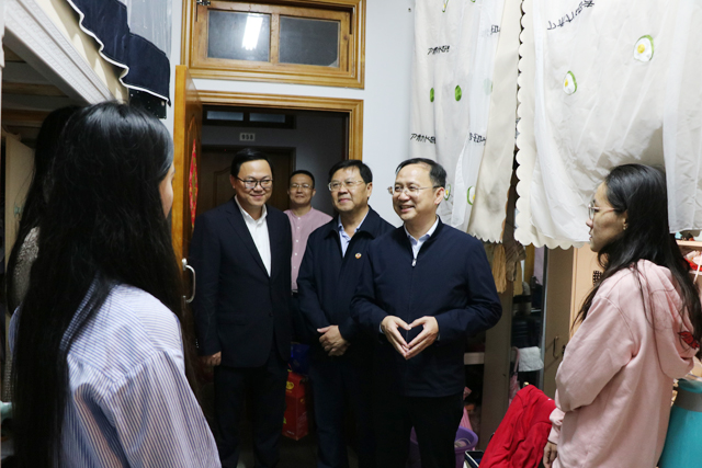 本站讯(记者/摄影 梁现战)春节前夕,2月9日下午,海南大学校长骆清铭、副校长梁谋一行走访慰问留校过年学生,与学生亲切交流,向他们致以新春祝福和节日问候。走进一间学生宿舍,留校学生正在埋头学习英语……骆清铭一行来到紫荆2号学生宿舍楼,对同学们假期间仍坚持学习的奋斗精神表示肯定,详细询问留校学生假期的生活、学习情况,并送上节日慰问品。骆清铭说,同学们虽与家人短暂分别,但有来自学校大家庭的温暖,留校过年...