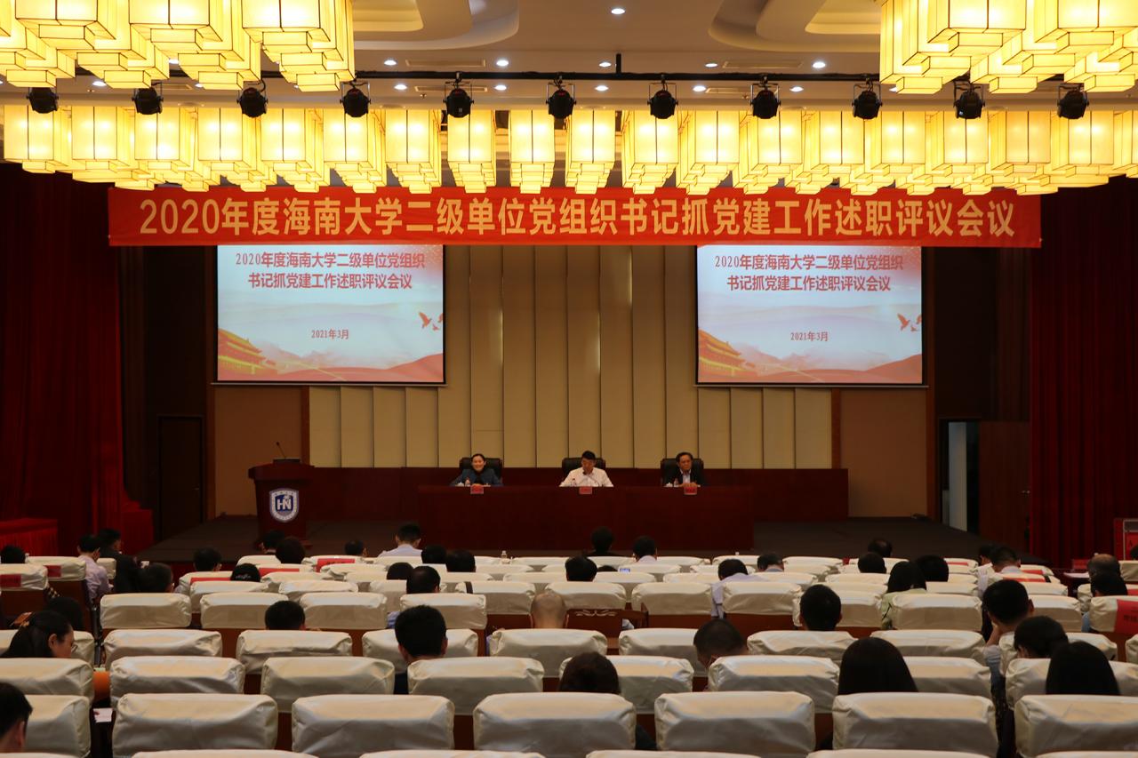 本站讯(记者/摄影 潘锭钰)3月5日上午,2020年度海南大学二级单位党组织书记抓基层党建工作述职评议会议在社科楼二楼报告厅召开。部省合建高校党建工作联络员谭基虎;海南大学党委书记武耀廷,党委副书记、校长骆清铭,纪委书记、监察专员郑尉杰,副校长傅国华,党委常委、副校长胡新文、陈险峰、叶光亮、曹宪忠、范文,党委常委、组织部部长韩淑梅,党委常委、宣传部部长谭勇,党委常委、统战部部长陈明宝出席会议。会议由韩...