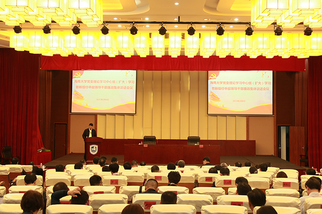 本站讯(记者/摄影 张赫)3月8日上午,党委理论学习中心组(扩大)学习暨新提任中层领导干部廉政集体谈话会议在社科楼二楼报告厅召开。海南大学党委常委和校领导武耀廷、骆清铭、郑尉杰、傅国华、胡新文、陈险峰、王崇敏、梁谋、叶光亮、曹宪忠、范文、韩淑梅、谭勇、陈明宝出席会议。 校党委书记武耀廷指出,全体党员领导干部要深入学习贯彻习近平总书记关于巡视工作的重要论述,《中国共产党章程》《中国共产党纪律处分条例...