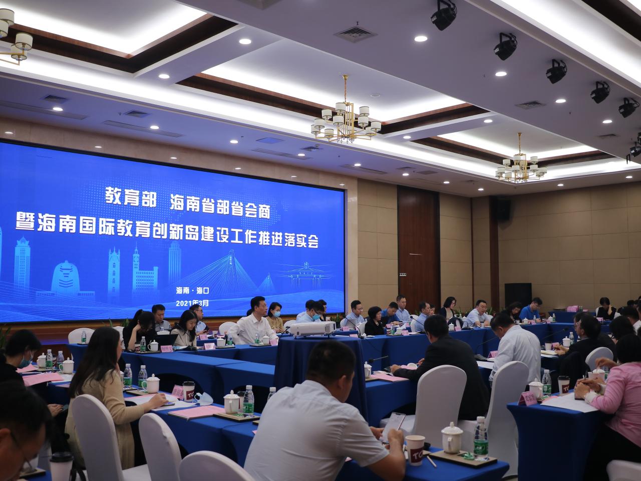 本站讯(记者 潘锭钰 摄影 甘晓洁)3月1日下午,教育部 海南省部省会商暨海南国际教育创新岛建设工作推进落实会在海南大学国际学术交流中心召开。教育部国际司司长、港澳台办主任刘锦,国际司副司长闫炳辰;海南省教育厅副厅长、教育部国际司一级巡视员陶洪建;海南大学党委书记武耀廷,党委常委、副校长王崇敏、叶光亮;沈阳大学校长、联席会秘书长赵彦志;宁波诺丁汉大学党委书记应雄;中国政法大学副校长时建中出席会议。陶...
