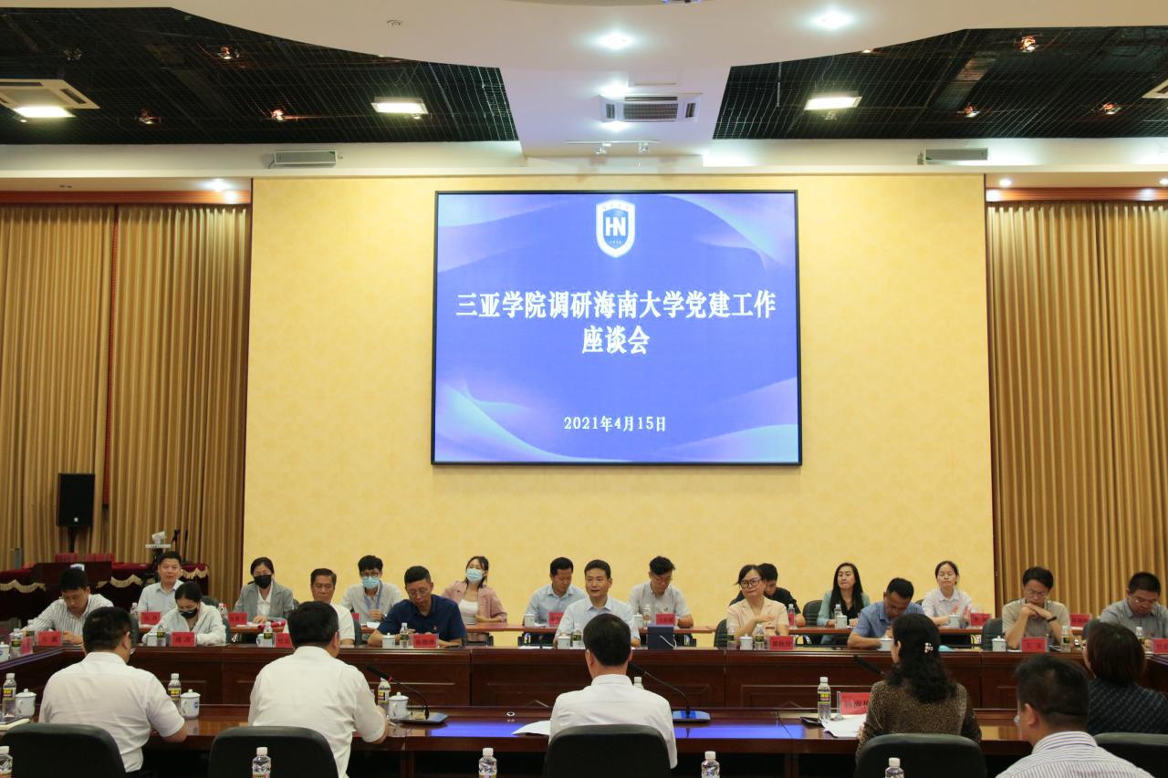 本站讯(记者/摄影 张赫)4月15日上午,三亚学院党委书记朱双平一行到海南大学调研,并在思源学堂多功能厅举行座谈会。海南大学党委书记武耀廷,党委常委、副校长曹宪忠,党委常委、组织部部长韩淑梅出席会议。会议由曹宪忠主持。武耀廷向三亚学院近年来取得的办学成果表示祝贺。他指出,海南省具有得天独厚的特殊区位优势和国家政策优势,省内各高校抢抓机遇、借势发力,为国家和地方经济社会发展培养了大批人才。他强调,党建...