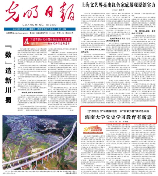 【奋斗百年路 启航新征程·学党史 悟思想 办实事 开新局】(光明日报记者 陈怡 王晓樱)近日,海南大学迎接中国共产党成立100周年的100个视频、100张图片、100个故事“三个100”系列学习资料正在紧张筹备,全校师生进入火热的党史学习教育氛围中。该校在党史学习教育方面新意颇多:以过“政治生日”为契机,为广大党员教职工加油充电、补充精神钙质;以“朋辈力量”为桥梁,赓续年轻学子的红色血脉。“你还记得自己入党当天的场景吗?在成...