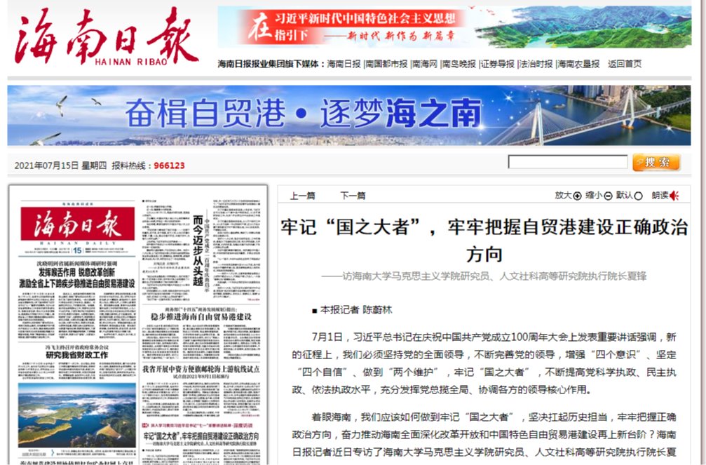 在庆祝中国共产党成立100周年大会上,习近平总书记强调:“新的征程上,我们必须坚持大团结大联合,坚持一致性和多样性统一,加强思想政治引领,广泛凝聚共识,广聚天下英才,努力寻求最大公约数、画出最大同心圆,形成海内外全体中华儿女心往一处想、劲往一处使的生动局面,汇聚起实现民族复兴的磅礴力量!”为有效发挥华侨华人在服务地方经济社会发展中的作用,海南大学深入学习贯彻习近平总书记“七一”重要讲话精神,坚持以...