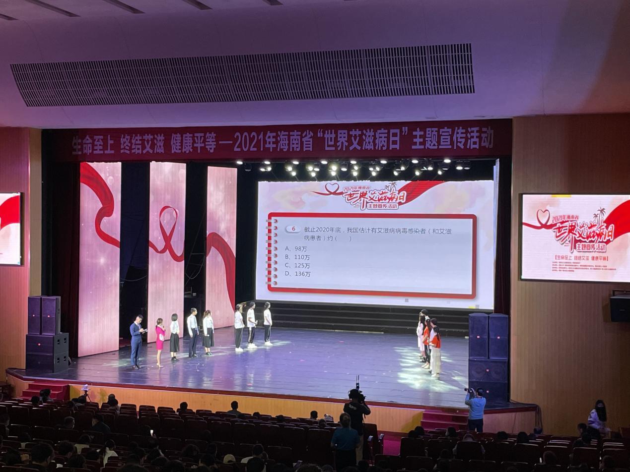 本站讯(记者 李天畅) 2021年12月1日是第34个“世界艾滋病日”。为推进“十四五”时期学校预防艾滋病教育工作的开展,促进青年学生身心健康,12月1日上午,由海南省卫生健康委员会、海南省教育厅主办,海南大学承办的2021年海南省“世界艾滋病日”主题宣传活动在思源学堂大礼堂举行。海南省卫生健康委员会副主任曾昭长,海南大学党委常委、副校长胡新文出席活动。活动现场。今年我国宣传活动主题是“生命至上 终结艾滋 健康平...