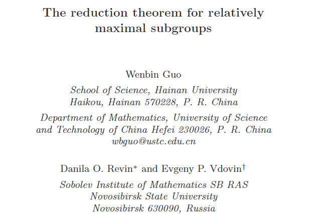 本站讯(记者 李天畅)海南大学理学院柔性引进专家郭文彬教授以海南大学为第一单位在国际著名期刊《Bulletin of Mathematical Sciences》(数学科学通报,1区Top SCI杂志)上发表长达47页研究论文,解决了1963年德国杰出数学家、著名群论大师Wielandt 在1963年提出的一个著名猜想和一个公开问题。论文第一作者为郭文彬教授,合作者是俄罗斯科学院Sobolev数学研究所Danila Revin教授和Evgeny Vdovin教授,通讯作者是Danila Revin...