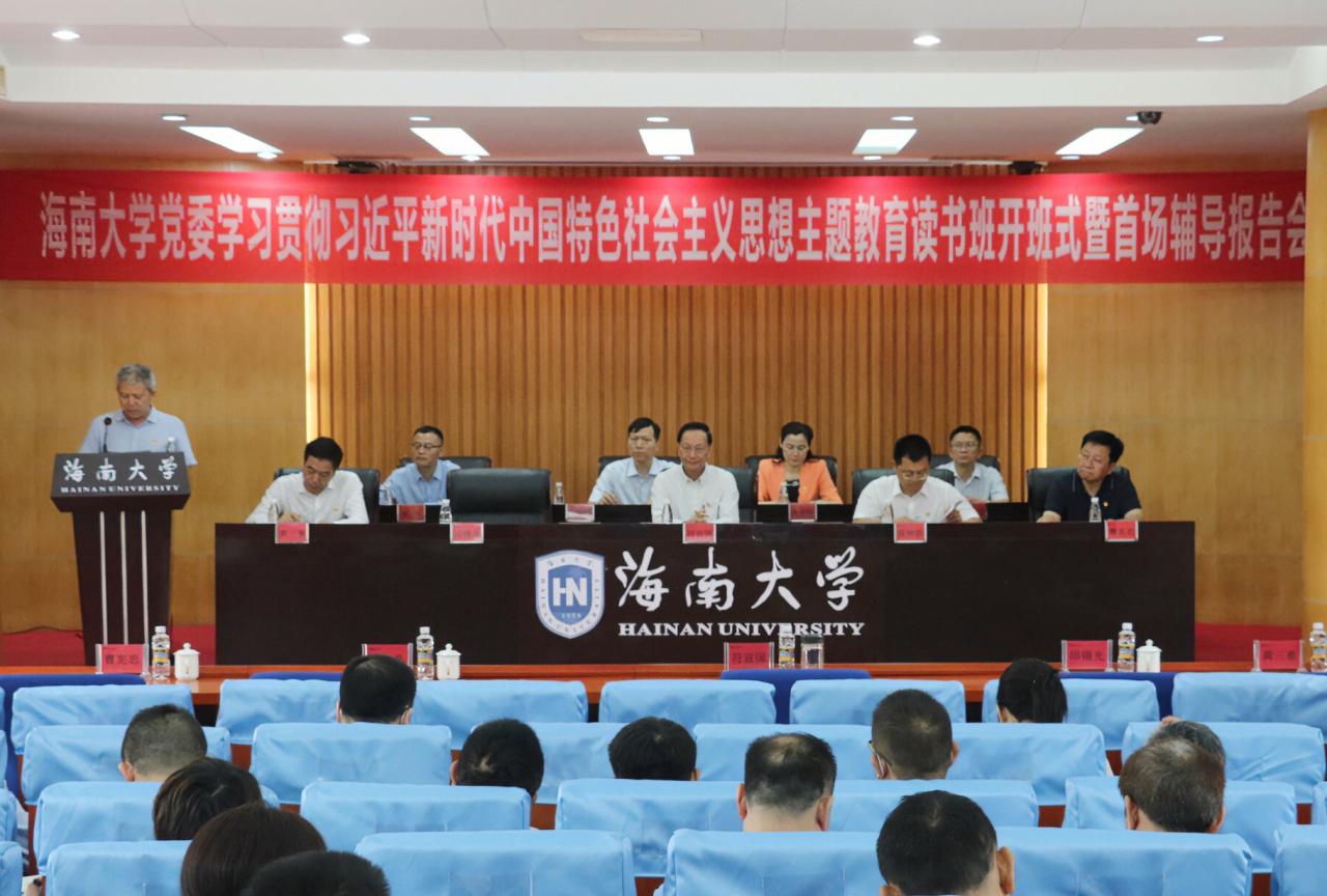 本站讯(记者 郑润泽 罗乔乔 高天阳 蒋明希)4月22日上午,海南大学党委学习贯彻习近平新时代中国特色社会主义思想主题教育读书班开班式暨首场辅导报告会在行政楼一楼报告厅召开。省委主题教育第九巡回指导组成员黄三喜、李雪峰到会指导;海南大学党委书记符宣国,党委常委和校领导高佃恭、邱锡光、曹宪忠、韩淑梅、谭勇、陈明宝出席会议。会议由邱锡光主持。会议现场。 贺元琦 摄符宣国作开班动员讲话,他指出,要充分认识主题...