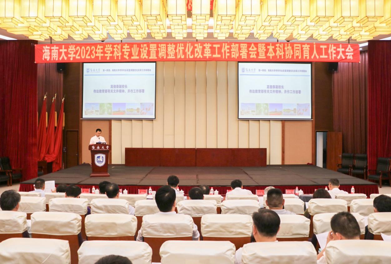 本站讯(记者 梁现战 董澄和 赵睿晗)4月17日下午,海南大学2023年学科专业设置调整优化改革工作部署会暨本科协同育人工作大会在社科楼二楼报告厅召开。海南大学校长、中国科学院院士骆清铭,校党委常委和校领导梁谋、曹兵、高佃恭、邱锡光、曹宪忠、陈骏、韩淑梅、谭勇、陈明宝出席会议。会议由陈骏主持。会议现场。赵睿晗 摄骆清铭作题为《聚焦关键问题 强化协同育人 全面提升人才自主培养质量》的讲话。他指出,近年来海南大...
