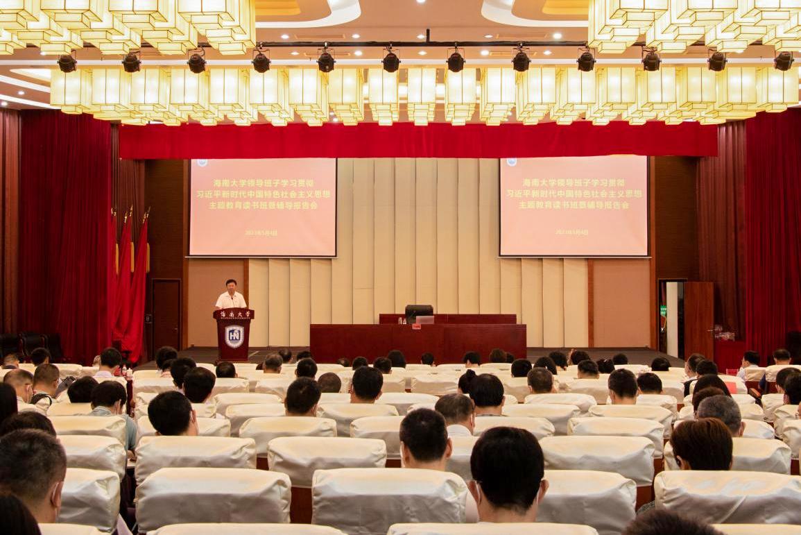 本站讯(记者 郑润泽 杨婕 梁现战)5月4日,海南大学领导班子学习贯彻习近平新时代中国特色社会主义思想主题教育读书班暨辅导报告会在社科楼二楼报告厅举行。省委主题教育第九巡回指导组成员黄三喜、容佳琪到会指导;海南大学党委书记符宣国,党委副书记、校长骆清铭出席会议并作辅导报告。会议由党委常委、副校长梁谋主持。主题教育读书班暨辅导报告会现场。 杨婕 摄符宣国以《以党的政治建设为统领 扎实推进海南大学高质量发...