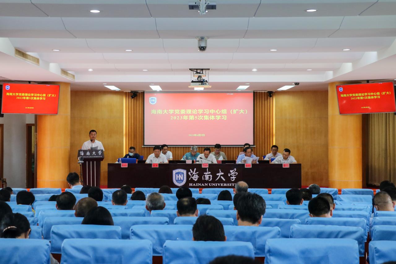 本站讯(记者 王一钦 万睿志)6月9日上午,海南大学党委理论学习中心组(扩大)学习会议以线上线下相结合的方式在办公楼一楼报告厅举行,传达学习习近平总书记在中共中央政治局第五次集体学习时的重要讲话精神。省委主题教育第九巡回指导组成员黄三喜到会指导。海南大学党委书记符宣国,党委常委和校领导梁谋、郑尉杰、高佃恭、邱锡光、陈骏、韩淑梅、谭勇、陈明宝;教育部党建工作联络员谭基虎出席会议。符宣国主持会议。会议...