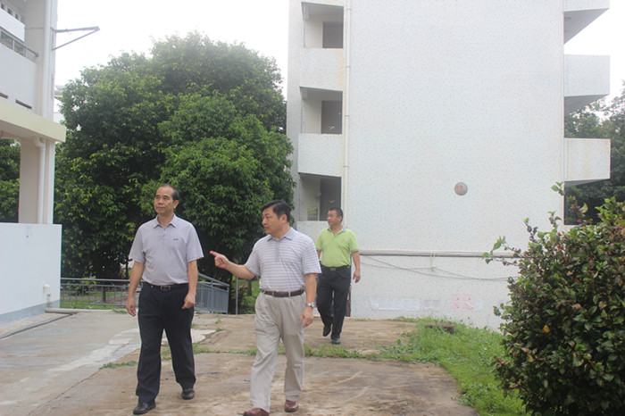 8月11日,海南大学副校长何忠平在后勤集团总经理朱荣平,总经理助理蒙生儒的陪同下,深入儋州校区检查指导假期有关工作。