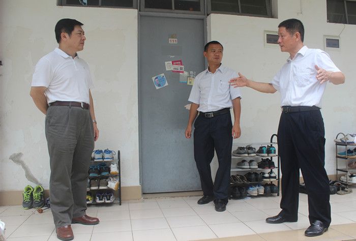 9月1日,海南大学副校长何忠平在后勤集团副总经理李长明,总经理助理蒙生儒的陪同下到海甸校区学生区检查宿舍维修改造项目等迎新准备工作。