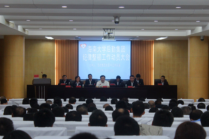 为进一步改进工作作风,强化服务意识,推进“三严三实”专题教育和集团各项工作深入开展,10月13日上午,集团在行政楼一楼报告厅召开纪律整顿工作动员会议。海南大学副校长何忠平,集团总经理朱荣平,副总经理李海清、李长明、邓井红,总经理助理蒙生儒、徐小华、郑振福以及部级以上干部员工160多人出席会议。会议由集团党委书记徐凤莲主持。
