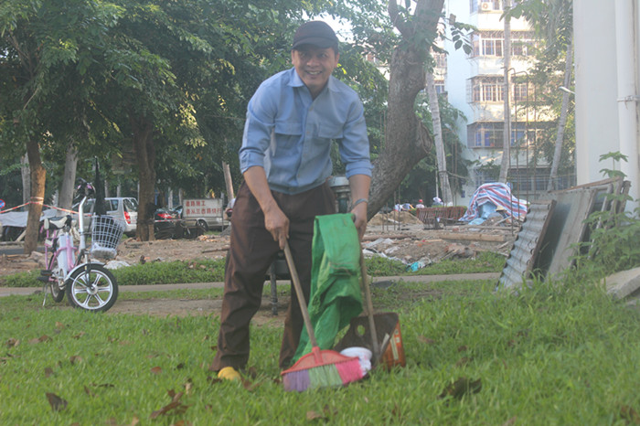 7:20,住宅区的环卫工人叶世积“莎莎”扫地声,奏响了教工区最清爽的晨曲。