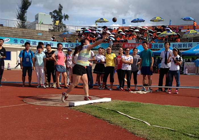 在11月7日下午结束的海南大学第43届运动会上,后勤集团代表队的运动健儿们团结拼搏、同心协力,以348.4分再夺教工组团体冠军。翁振华打破教工男子青年组跳高记录,劳丽金打破女子教中组铅球记录,劳丽珠打破女子青年组标枪、铅球两项纪录。