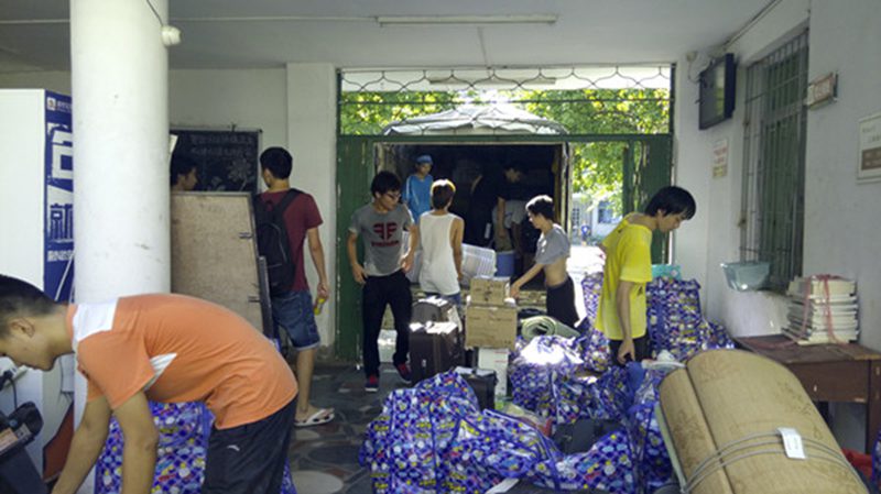 同学们在楼管的安排下有秩序的搬迁宿舍