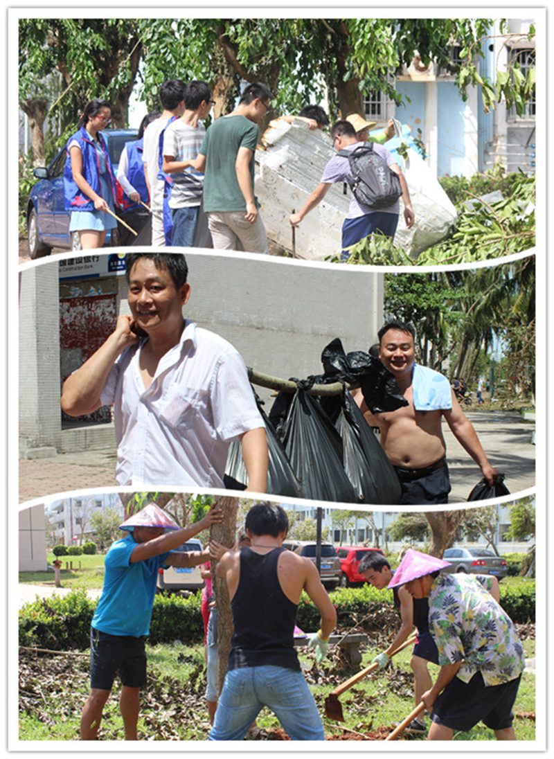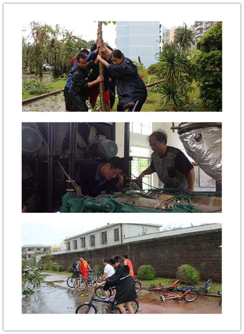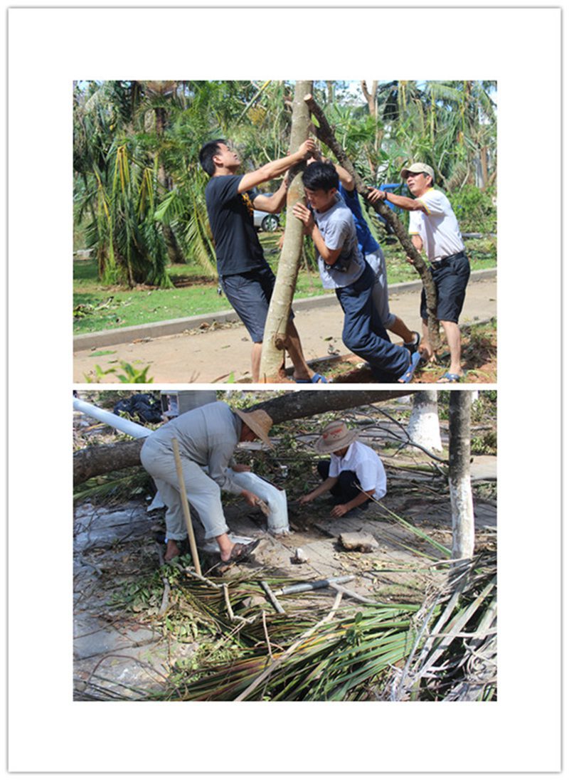 7月18日,受超强台风“威马逊”影响,一场40年一遇的台风袭击美丽的海大校园,校园满目疮痍,受损严重。 风雨无情人有情, 面对风雨灾情,集团上下,众志成城;面对风雨灾情,党群相依。每当险情发生,集团领导总是在第一时间奔赴现场,果断指挥,妥善安置在险情与困境之中,部门之间互帮互助,共渡难关。