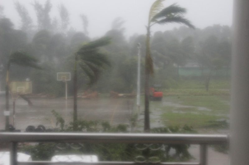 14点,风雨开始变得猛烈了,笔者看到起点草坪上的一棵大的木麻黄被风连根拔起横躺在地,办公楼前的树木被风吹得扑哧扑哧的响,树头猛烈的摇晃。