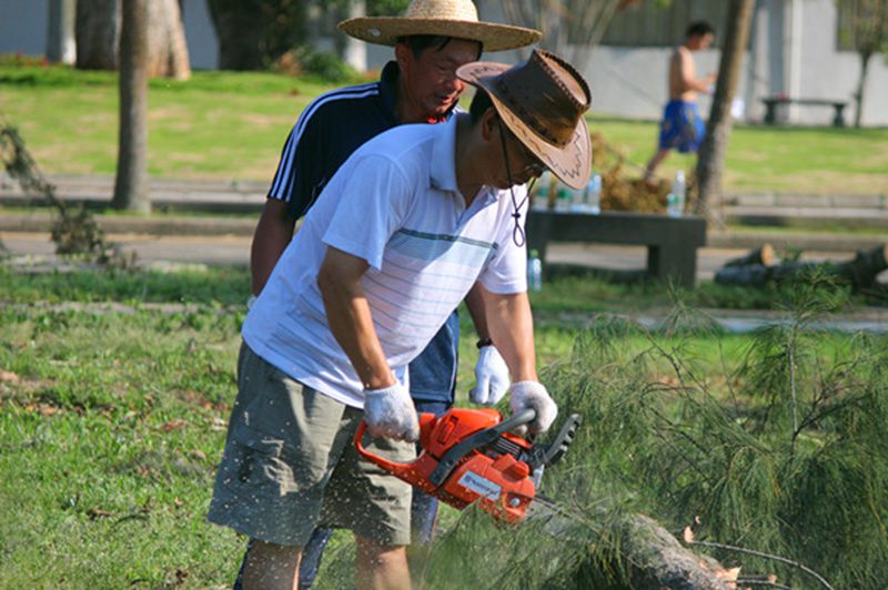 同时,笔者还了解到,还有一些老师和员工家属也不分你我闻风而动,自觉参与自救工作,他们的表现更多是给人们感动。比如教务处的邱锡光、蔡宇新老师,信息学院的霍世清老师等,他们看到后勤人没日没夜地干活,也尽自己的微薄之力,搬断枝、锯树干、砍树枝,为恢复校园环境做点力所能及的事情。劳动过程中,他们衣衫都已被汗水浸透,有的手臂被树枝划伤,但是他们仍在坚持着。