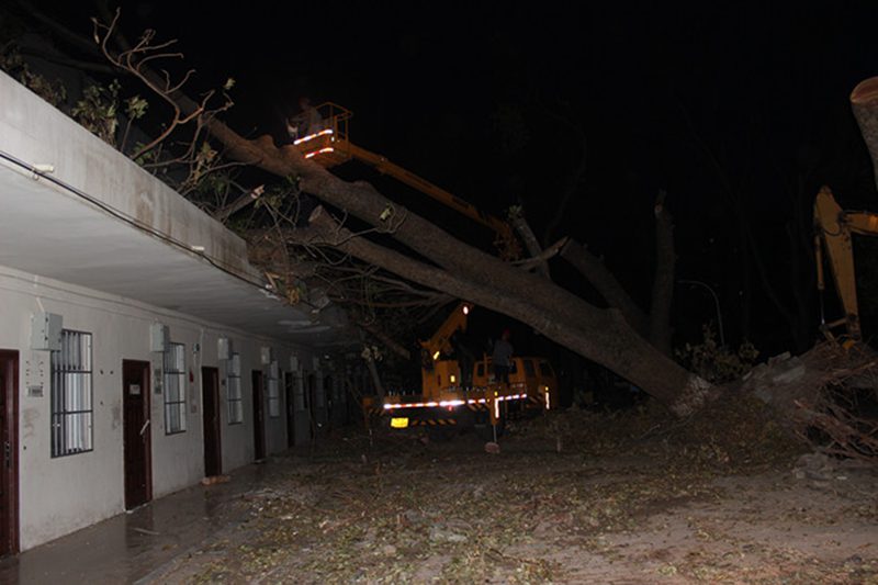 面对灾情,校园服务中心迎难而上,全体员工上下齐心、众志成城,从紧急集合到抢险除患,再到恢复校园往日的环境,打响了一场与风雨较量、和时间赛跑的战斗。