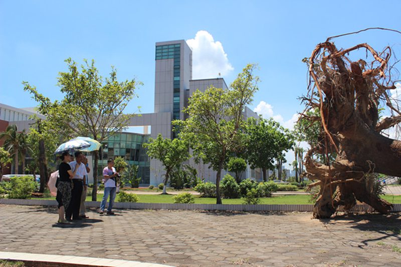 台风中废弃的老树根可以用来做什么呢?也许很多人会扔掉,或者用来当柴火烧掉。但是,学校领导却把这些树根当成了宝贝,一则留下威马逊的威猛印记,二则把它做成了一件根雕艺术品。近日,在学校相关部门的指导下,后勤集团副总经理李海清与海南大学艺术学院的专家对台风“威马逊”吹倒的大树废弃大树根进行现场论证,希望能够通过艺术学院的专家的艺术构思,在根的形、神、奇、巧上下功夫,充分挖掘内涵、使自然之奇与人工之巧融为一体,赋予枯根新的艺术生命,化腐朽为神奇。
