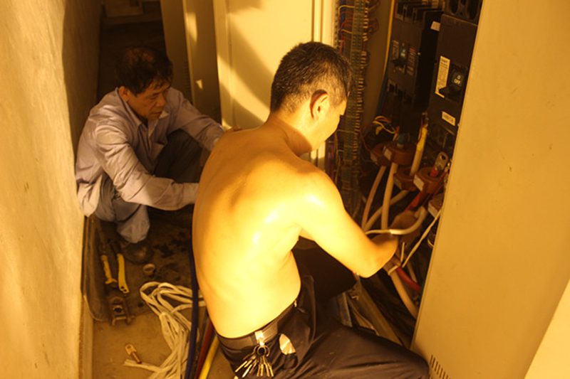 电工师傅正在做电缆接头