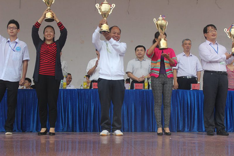 后勤集团工会主席许成强副总经理(左三)代表集团领取教工组团体冠军奖杯