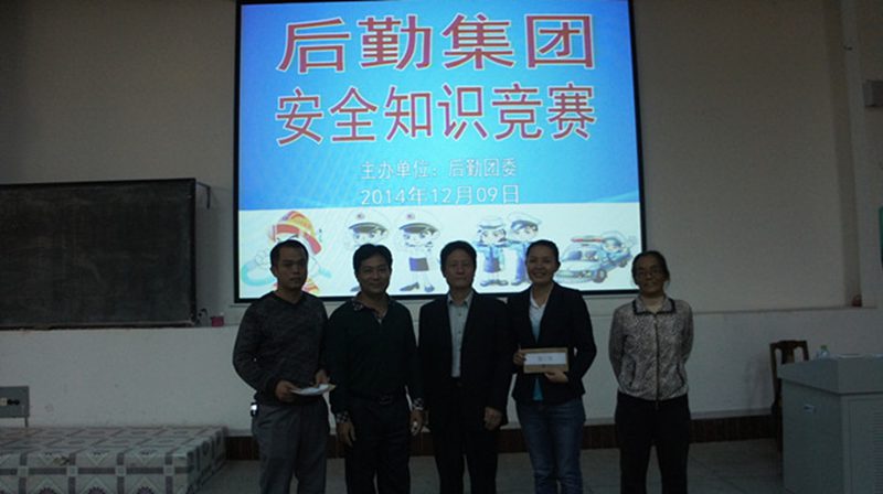 在安全知识竞赛现场,来自儋州校区各中心的18名参赛选手,以中心为单位组成的6个代表队,经过近两个小时的激烈角逐,最终水电服务中心获得第一名,商贸公司和市场管理办公室分获二三名。