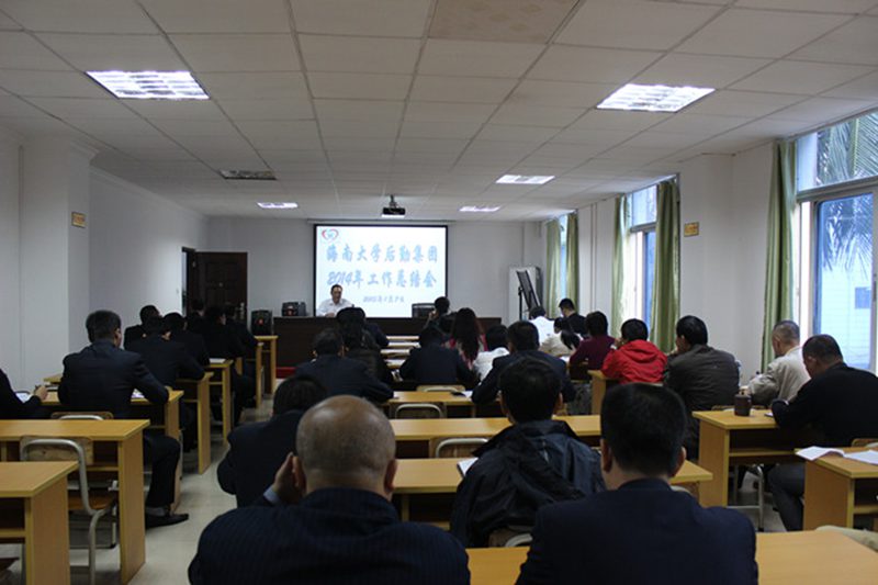 樊春总经理还在会上对集团2014年工作进行了总结。他指出,在校领导的亲切关怀和领导下,集团上下精诚团结,经过集团全体员工的辛勤工作,努力克服困难,在管理服务、迎新接待、餐饮服务、水电保障、校园环境绿化等方面,管理得到进一步规范,保障力度也得到不断的加强。特别是抗击台风“威马逊”期间,全体员工众志成城,不等不靠,在艰苦的条件下,舍小家顾大家,夜以继日地用勤劳的双手和辛勤的汗水为校园的灾后重建工作做出了积极贡献,取得抗风救灾全面胜利,全年各项工作基本实现了预期目标。