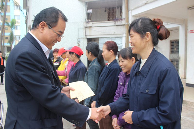 值此羊年春节即将来临之际,为了确保集团困难员工能过上一个祥和愉快的节日,1月26日上午,后勤集团总经理樊春、党委书记徐凤莲、副总经理李海清等集团领导深入基层,先后对饮食服务中心、工程中心、水电服务中心、学生区物业管理中心、教学区物业管理中心、住宅区物业管理中心、校园服务中心的47名一线困难员工进行慰问,送去慰问金,并致以节日祝贺和新春问候,让困难职工切实感受到党组织的关怀和温暖。