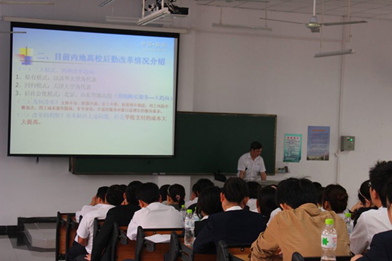 学习会上,邓井红副总经理将在天津大学挂职期间的见闻与感受作了精彩的汇报,把对北京、山东、广西等28所高校后勤改革情况和省外高校后勤实体在餐饮管理、宿舍管理、物业外包、文化建设、校园环境、安全防范、信息化建设等方面的调研成果,提出了“每个人都是后勤的形象,每个人都是后勤工作的依靠力量,人人都要勤于思考后勤问题,人人都要勇于担当后勤工作的任务,人人都要争当后勤形象的维护者”的要求与大家共勉。