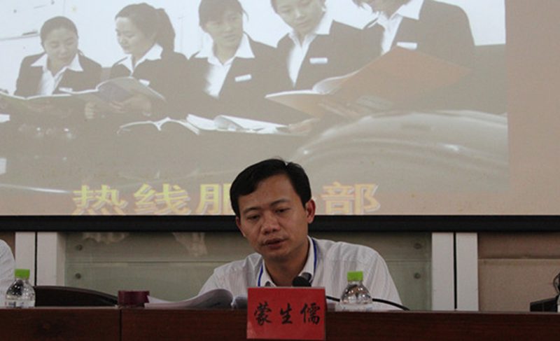 后勤团委书记蒙生儒代表共青团海南大学后勤集团第一届委员会做工作报告