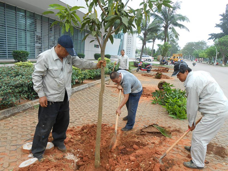 校园服务中心负责人介绍,一直以来,海甸校区对校园绿化苗木补种补栽工作较为缺乏,造成校园树种种类偏少,特别是名贵树种特别少。为完善校园树种格局,根据海甸校区实际,校园服务中心利用春季这个苗木生长的黄金时节,补种一批名贵树种和果树,所补种的苗木达到600多株,种类为黄金香柳、野牡丹、小叶榄仁、睡莲、再力花、三角梅、芒果树、桃树等,同时还补种了太阳花80㎡;铺设草坪150㎡。