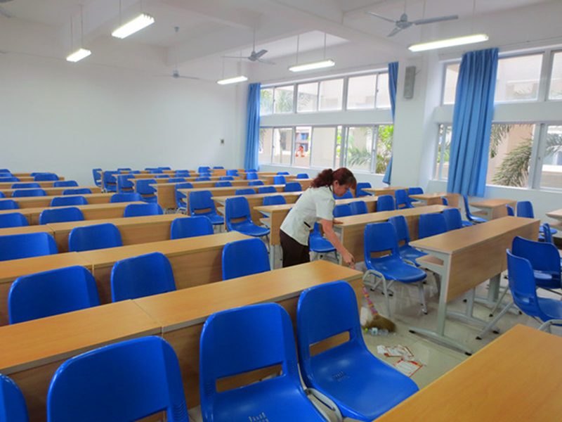 为了深入开展 “后勤质量月”活动,认真落实“校园美化整洁”的活动主题,按照“实、精、严、高”的工作要求,4月15日下午,教学区物业管理中心组开展了一场卫生工技能比赛活动,本次比赛分为教室组和卫生间组,由集团办公室、质量办公室、校园服务中心、学生区物业管理中心、住宅区物业管理中心相关人员组成的评比小组进行现场评分。