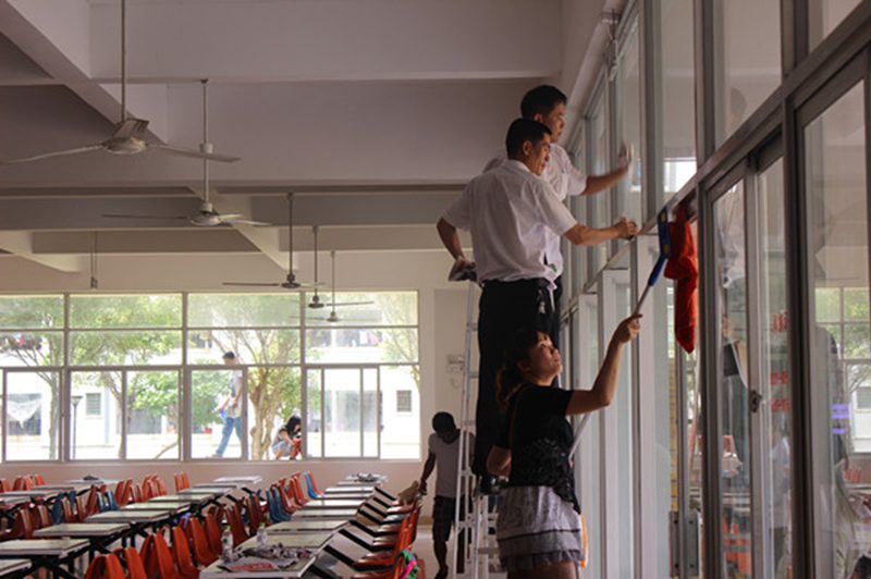 近日,饮食服务中心为了认真贯彻落实海南省、海南大学食品安全工作的会议精神,在“五一”国际劳动节期间,组织党员干部、团员青年及勤工助学学生们放弃节日休息的时间,在第六食堂开展了以“净化就餐环境 保障食品安全”为主题的清洁卫生大扫除活动。