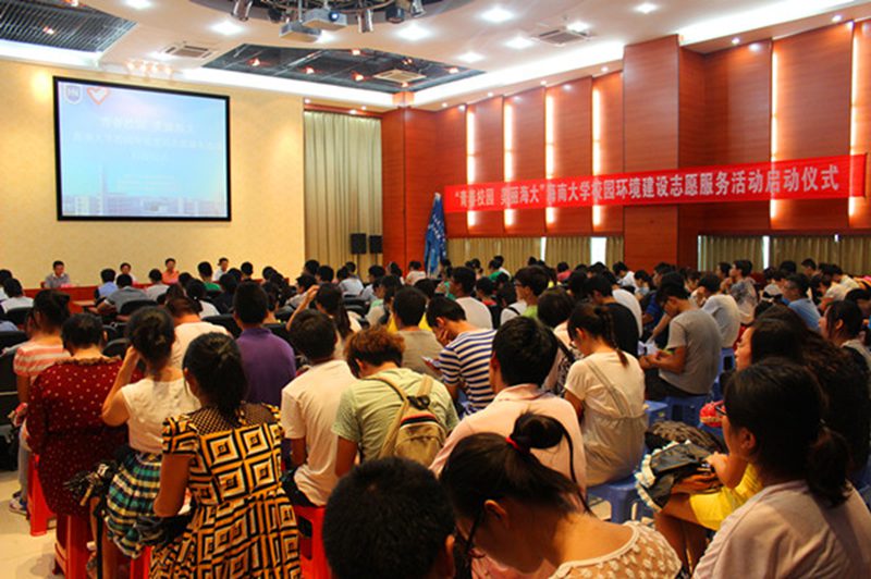 5月23日下午5点,思源学堂多功能厅里处处洋溢着青春的活力,伴随着激昂向上振奋人心的《志愿之歌》优美旋律,由海南大学青年志愿者协会、共青团海南大学后勤集团委员会、各学院青年志愿协会共同发起的“青春校园、 美丽海大”海南大学校园环境建设志愿服务活动正式启动。校团委副书记陈广锐、后勤集团副总经理李海清、后勤团委书记符万祺以及后勤团委干部、各学院青年志愿者协会代表共计200余人参加了启动仪式。校团委老师陈青主持启动仪式。