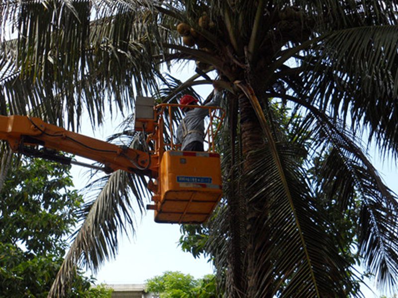 为应对异常天气可能带来的安全隐患,校园服务中心从4月26日起,出动高空作业车对校园的椰子树枯枝、枯果进行全面清理,发现安全隐患及时排除。但从清理工作过程中看到,教工住宅区部分车辆占道停放秩序较乱,在一定程度上影响枯枝枯果清理的进度。中心呼吁,教工住宅区的车主要在指定的车位停放,为枯枝枯果的清理让路,切实为“平安校园”建设添力。