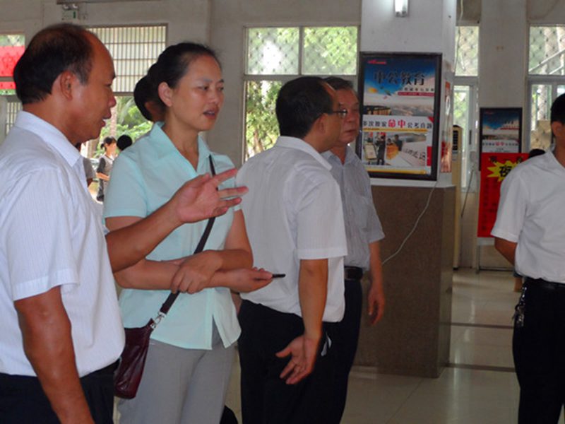 首先,许成强副总经理向邵天富总经理介绍了海南大学后勤集团饮食服务中心管理经营情况,然后宾主双方就物资采购、卫生检查和仓库管理等方面分别进行了深入交流,同时安检员还现场给来宾讲解及操作了蔬菜农药残留检测仪器。